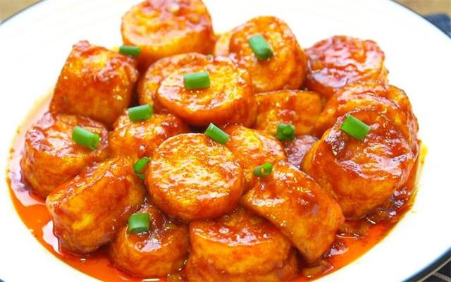 準備食材: 玉子豆腐、玉米淀粉、食用油、蒜末、小蔥、生抽、素蠔油、鹽、白糖、韓式辣椒醬、清水 具體做法: