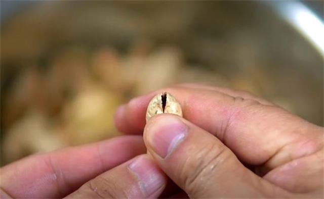 2.如果想節約時間,可以將花生的一頭捏開,這樣做花生更容易入味。