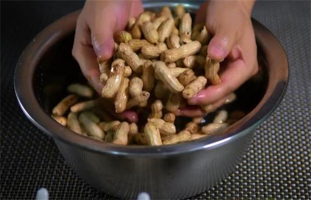 1.準備適量帶殼花生,如果是干花生,先用水浸泡一個小時,雙手搓洗掉外面的泥土。