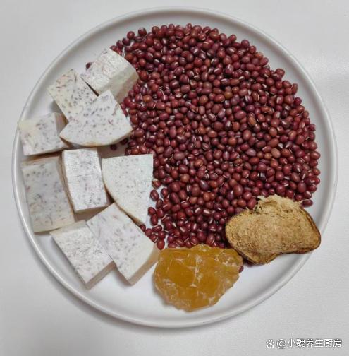 準備一些食材:選購優質紅豆180克左右(紅豆又叫赤小豆,是常見的糧食作物,富含豐富的蛋白質,鐵元素和其他營養,紅豆可以用來煮粥或煲湯,多喝能夠起到養胃健脾,祛濕排毒的效果),陳皮15克左右,香芋250克(香芋是芋頭的種類之一,芋頭的口感十分軟糯,富含大量的膳食纖維和營養元素,每天吃都不會胖,幫助疏通腸道,想要減肥的朋友可以試一試),少許清水,溫水少許,老冰糖20克,其他。