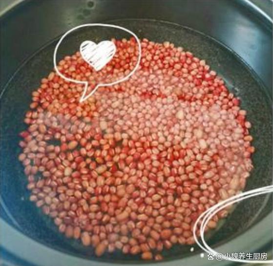 步驟3:準備好一個燉鍋,鍋中放入洗凈的紅豆,加上適量冷水,蓋上鍋蓋燜煮40分鐘,中途要反復攪拌,避免紅豆煮粘鍋糊鍋,等待紅豆煮至快要開花。