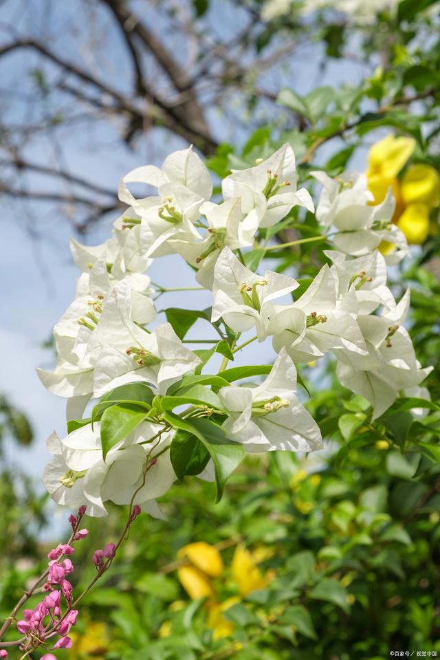 二、三角梅花期養護方法光照充足:三角梅是陽性植物,需要充足的陽光才能生長健康。在花期,應將三角梅放置在光照充足的地方,以促進花朵的生長和開放。如果光照不足,可能會導致花朵數量減少或者花朵顏色暗淡。 控制澆水:在花期,澆水要適量,既要保證土壤濕潤,又不能過度澆水導致根系腐爛。在澆水時,最好使用噴壺進行噴灑,以保持花朵和葉子的濕度,使花朵更加鮮艷持久。 溫度適宜:三角梅適宜的生長溫度在15℃到25℃之間。在花期,應保持適宜的溫度,以促進花朵的生長和開放。如果溫度過高或者過低,可能會導致花朵生長不良或者花期延遲。