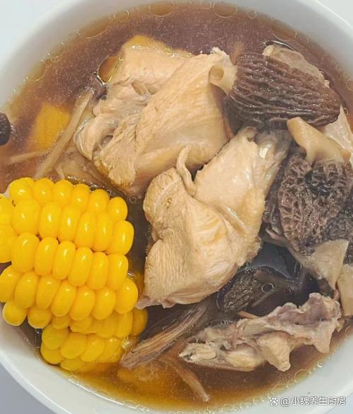 夏季到了酷暑階段,7月以后,我們明顯感受夏天的氣氛更濃郁了,天氣開始變得炎熱,氣溫直逼40攝氏度,炎熱的天氣讓人身體虛弱,陽氣不足,食欲會特別差,抵抗力會變得很差,很容易受到疾病的騷擾。夏天天氣炎熱,出汗多,我們的能量消耗加快,我們不能總吃涼菜或喝冷飲,飲食要講究合理搭配,一日三餐要科學合理。今天分享我們家晚餐的一款鮮湯——玉米羊肚菌燉雞湯,整體難度不高,湯汁鮮美又好喝,聰明人經常喝它。“7月一碗湯,醫生不用幫”,記得多喝這湯,營養全面,平安度夏。