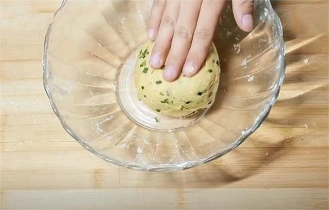 1.小蔥洗凈切成丁,加入100g清水,3g酵母粉,一勺鹽,一勺姜黃粉,15毫升食用油,攪拌均勻,250g面粉分多次加入,邊倒邊攪拌,等沒有干面粉的時候,下手揉成中等偏硬的面團,密封餳發至兩倍大。(www.ws46.com)