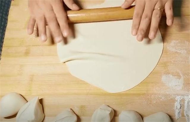 4.再次整理劑子的形狀,搟成比較薄的餅皮。