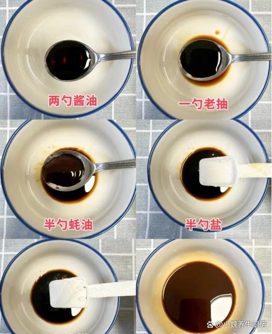 第四步:提前調配一碗醬料汁,加上兩勺生抽,一勺老抽,一勺蠔油,半勺食鹽,一勺淀粉,一小碗清水攪拌均勻,備用。