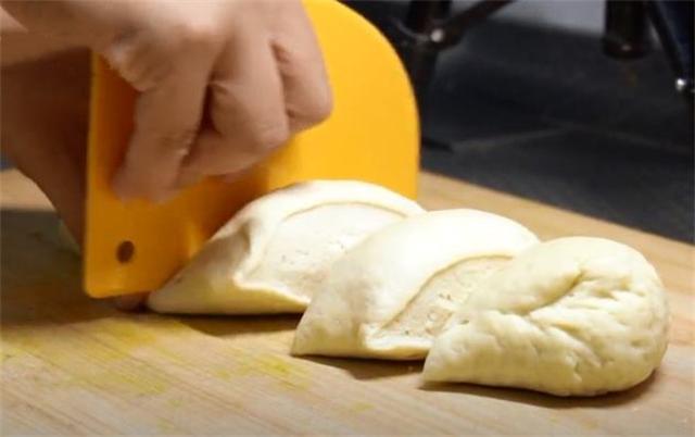 2.餳好的面團排氣,整理成長條形,下大小均勻的劑子。