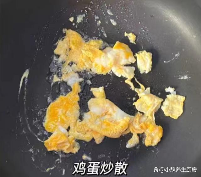 1:幾枚雞蛋都打在碗里,加上少許清水,加上食鹽和胡椒粉,快速將蛋液攪散,鍋底調(diào)入適量食用油,蛋液倒入鍋中,慢慢煎至成型,用鍋鏟翻炒成塊狀。