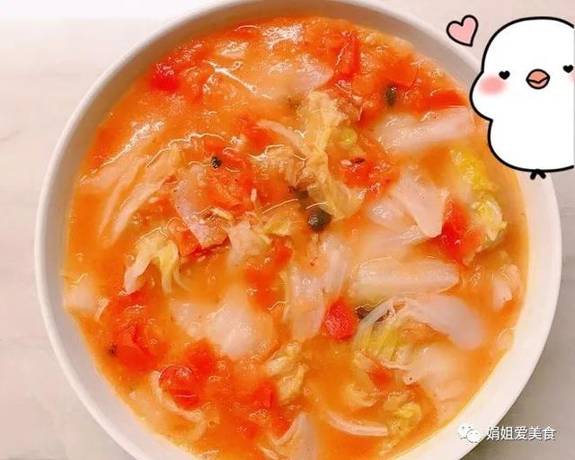番茄白菜湯 用料: 番茄2個、白菜半個、生姜片適量、鹽適量、水適量 做法: 1. 番茄洗凈切塊備用; 2. 白菜洗凈切成小塊備用; 3. 鍋中加適量水,放入生姜片,大火燒開; 4. 燒開后放入白菜,大火煮2分鐘; 5. 放入番茄塊,繼續煮2分鐘; 6. 最后加入適量鹽,攪拌均勻即可。 小妙招: 1. 番茄和白菜都是富含維生素的蔬菜,一起搭配營養價值更高; 2. 番茄煮時不要太長時間,否則會影響番茄的營養價值; 3. 可以根據個人口味適量加入調料,如味精、雞精等。