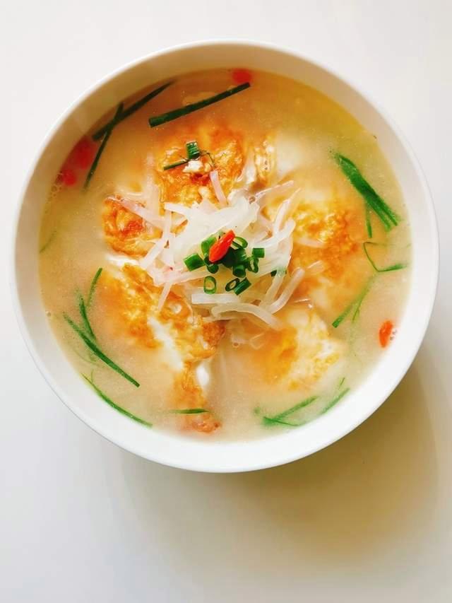 用料: 蘿卜1個(gè)、雞蛋2個(gè)、姜片適量、清水適量、鹽適量、香菜適量。 做法: 1.將蘿卜去皮洗凈,切成小塊備用; 2.將雞蛋打入碗中打散備用; 3.姜片切成細(xì)末備用; 4.鍋中加入適量清水,放入姜末燒開; 5.然后加入蘿卜塊煮至軟爛; 6.加入雞蛋液,用筷子攪拌均勻; 7.煮至雞蛋熟透,加入適量鹽調(diào)味; 8.裝盤,撒上香菜即可。 小妙招: 1.蘿卜和雞蛋的比例可以根據(jù)自己的口味和需求進(jìn)行調(diào)整; 2.如果喜歡口感細(xì)膩的湯,可以使用攪拌器將湯打成細(xì)膩的汁。