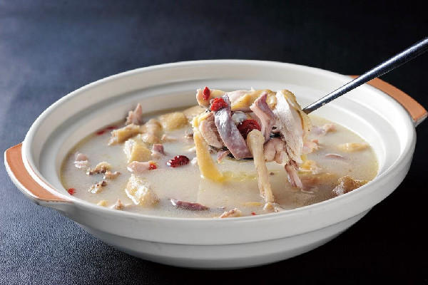 豬肚雞是哪里的特色菜豬肚雞是廣東省的特色菜。 是廣東客家地區比較流行的食物,含有濃郁的藥材和胡椒香氣。豬肚里含有很多元素如鈣、鉀、鈉等,和營養成分維生素A、蛋白質、脂肪等,吃了對人體有很多好處。豬肚包雞就是用生豬肚把生雞包住,用水草或者用牙簽扎好兩頭。 豬肚包雞是屬于客家菜系,也叫豬肚煲雞、鳳凰投胎,在廣東的深圳、惠州、河源、梅州等粵東一帶比較流行,是廣東客家地區辦酒席必須會準備的餐前用湯,湯里濃中帶清。 豬肚中含有大量的鈣、鉀、鈉、鎂、鐵等元素和維生素A、維生素E、蛋白質、脂肪等成分。 對于脾虛食少、消化不良、食欲不振的人,如果適當食用豬肚,會有很好的健脾胃、增進消化能力的作用。但是豬肚含有的油脂和膽固醇的量比較多,還是要適當食用的。血稠的人就不建議吃。 |