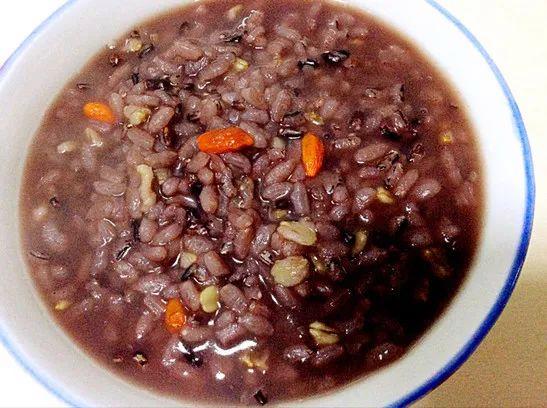 3、待粥濃稠時,放入紅糖調味,再稍煮片刻,即可盛起食用。 4、黑米:黑米含蛋白質、脂肪、碳水化合物、B族維生素、維生素E、鈣、磷、鉀、鎂、鐵、鋅等營養元素,營養豐富;具有清除自由基、改善缺鐵性貧血、抗應激反應以及免疫調節等多種生理功能。 做法二、黑米粥的日常的制作方法 1、取農家黑糯米半杯。 2、加入水淘洗干凈。 3、洗凈的黑糯米加入適量的水,半杯米加入水份大概到1.0,三碗的份量。