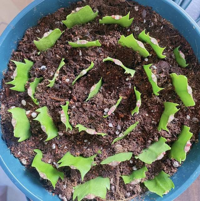 到了秋天,有經驗的朋友,可以給蟹爪蘭修剪一下,如果葉片很擁擠,比較密集,會影響整體發育。剪下來的健壯枝條,正好可以進行扦插繁殖。 蟹爪蘭的葉片生根能力很強,只要把葉片插到透氣排水好的土壤中,不出兩周就可以生根發芽。但前提是必須要選擇,飽滿健康的葉片,用砂質土壤,土壤提前消毒,這樣成活率更高。