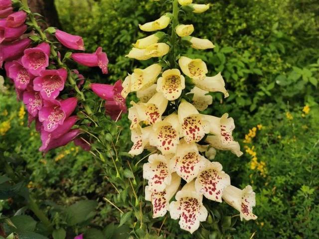 4、毛地黃 毛地黃,為一種草本植物,主要生長在歐洲的西南及中部。 毛地黃的葉子是一種類似于玉米葉的植物,很寬,而且略帶卷曲。 每到春季,毛地黃便會抽出一條長莖,莖長約一米二,花朵為圓柱形或懸鈴形,簇生,花瓣內壁有色斑,十分美麗。