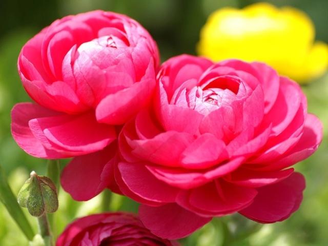 3、花毛莨 花毛茛又名洋牡丹,因其花色艷麗,花朵繁復,與牡丹不相上下,故名洋牡丹。 在野外生長的花毛茛,由于室內有暖氣裝置,開花時間會更早,通常都是在春天開花。它的觀賞性可達到30-40天,是一種很好的除夕之花。 花毛茛是一種有根的植物。