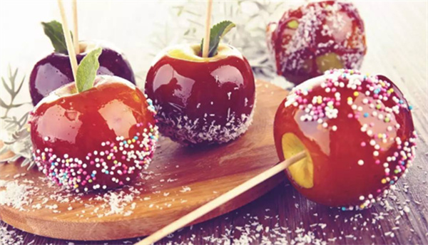 太妃糖蘋果在萬圣節是不是可以看到? 是可以看到的,萬圣節即將到來時,正好進入蘋果豐收的時期。甜甜的太妃糖蘋果慢慢就成為一種應節的食品,可以把蘋果直接插上竹簽,然后把蘋果放在糖漿里面不停的轉。此時就會黏上對應的果仁,又甜又脆的太妃糖蘋果,已成為小孩子的熱愛,之前就家家戶戶選擇送給孩子的習俗,但自從有人把刀片還有大頭針放入到其中之后,這種習俗漸漸的逐漸消失,并沒有出現在生活中。