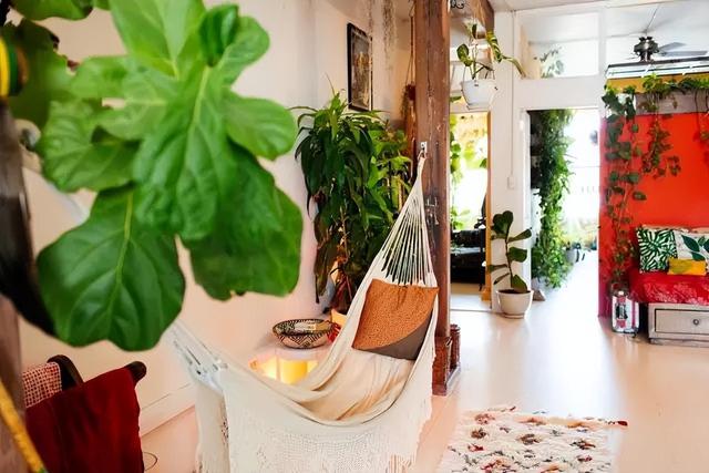 從一顆,兩顆,三顆,一直到五百多顆,在十一年的時間里, Summer將白色的墻壁,變成了一片草地,將一百多平方米的公寓,化作了一片森林。 和成百上千的植物生活在一起會是一種怎樣的感覺呢? 客廳里擺著一盆盆景,坐在搖椅上,發絲不經意間會與綠葉相觸,呼吸間則是自然的氣息,連床邊的常青藤都被風吹得東倒西歪,也不知道什么時候起床,枕頭上又會纏繞著一層又一層。