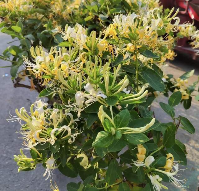 而室內養蘆薈不僅能使環境得到美化,同時會通過自身的作用來改變室內的空氣質量,可以吸收大多數的有毒氣體,尤其是對甲醛的吸收能力更強,因此,也有養人的效果。 金銀花 金銀花樹可以當做盆景放在室內,它的外形優雅,枝葉茂密,每年春天便可以開出黃白相間的花朵,就像一朵朵自由的云,漂浮在枝頭,輕盈而美麗。甚至可以散發出陣陣的清香氣味,沁人心脾,并給人帶來愉悅的心情。金銀花還是一種藥材,可以清熱解毒,疏散風熱等等。金銀花還可以吸養收空氣中的二化碳,釋放氧氣,利用空氣變得更加清新。同時還可以吸走毒氣,比如甲醛,更有舒緩壓力,改善睡眠的效果。