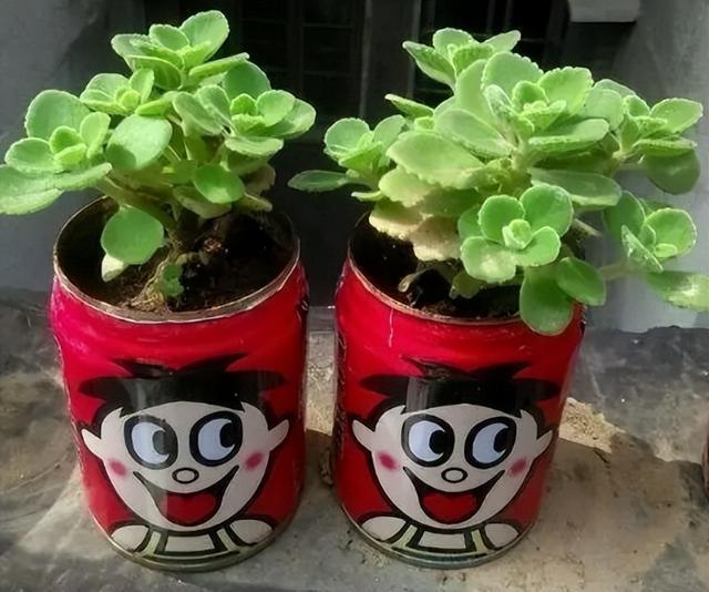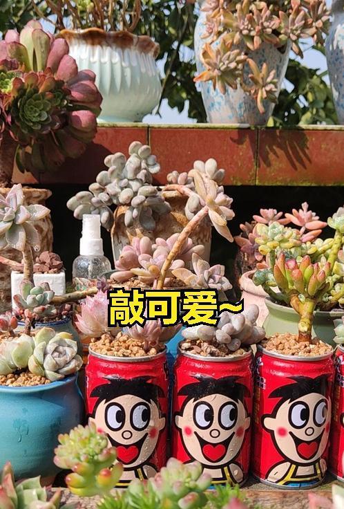 【蛻變】 這個小姑娘平時喜歡擺弄花花草草,喜歡將這些花花草草當成自己的珍寶,但還在上學,家長管的較嚴,對各種漂亮花卉和花盆并不能隨心所欲。 養上一些銅錢草,本是打發時間,誰知道,就無意間種進了一瓶飲料罐子里,竟然就蛻變了。 這是一個卡通人物,笑瞇瞇的,讓人感覺很是開心,銅錢草種在里面,效果出奇的好,小姑娘靈光一閃,就將這幾個罐子給收了起來,準備以后用。