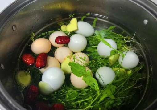 三月三煮雞蛋放什么配料可以放些紅棗、生姜等。 薺菜煮雞蛋的方法是:將新鮮薺菜洗凈后捆扎成一小束,放入雞蛋,再配兩三片生姜,紅棗要在雞蛋煮熟以后再放,這樣煮既可保證薺菜的清香及藥用功效完全滲透入雞蛋中,又可讓紅棗不爛、香甜可口。 薺菜營養豐富,含有大量的胡蘿卜素、B維生素和維生素C,而且鈣、鐵的含量也比較高,具有清熱止血、清肝明目、利尿消腫之功效。雞蛋則含有豐富的蛋白質、卵磷脂和維生素A。這兩種動植物搭配在一起,自然對身體很有好處。又因薺菜的諧音是聚財,所以人們將新鮮薺菜洗凈后捆成一束,放入雞蛋、紅棗、生姜一起煮,剝蛋喝湯,既沾一點財氣和靈氣,又能防病健身。但要注意,紅棗應在雞蛋煮熟后再放,這樣既可保證薺菜的清香及藥用功效完全滲入雞蛋中,又可讓紅棗不爛、香甜可口。
