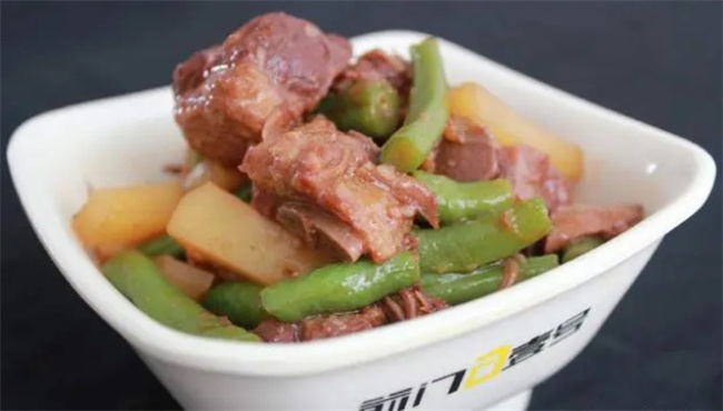 NO.5 四季豆燒排骨 準備食材如下:四季豆250克,排骨250克,食鹽1小匙,蒜5克,生抽2小匙,老抽1小匙,蠔油2小匙,植物油2大匙,水適量白糖1/2小匙,小蔥2根 詳細做法如下:將排骨洗凈血水,瀝干,放入蠔油、1/2小匙鹽、白糖、生抽,拌勻后放入冰箱冷藏腌制4小時以上;四季豆擇去頭尾及側筋,掰成段,洗凈待用,熱鍋放少許植物油,爆香大蒜,下入腌制好的排骨,炒至排骨出油,放入老抽,炒至排骨上色,放入完全淹過排骨的熱水,大火煮約10分鐘后下入四季豆,再煮約30分鐘,加入1/2小匙鹽,待湯汁差不多收干放入蔥花即可出鍋 !