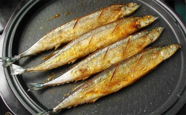 NO.4 孜然秋刀魚 準備食材如下:秋刀魚600克,食鹽適量,檸檬2片,橄欖油1湯匙,孜然少許 具體做法如下:秋刀魚收拾干凈,魚身斜刀劃上幾道刀口,橄欖油、檸檬、鹽、孜然粉備好,秋刀魚用廚房紙吸干魚身表面的水分,然后把魚的里外抹鹽腌制5分鐘,煎鍋倒入1湯匙橄欖油,晃動煎鍋讓油鋪滿煎鍋,油燒熱后把秋刀魚放入,用中小火煎制秋刀魚,煎至兩面微黃,撒入孜然粉,再煎至魚身成金黃色即可,食用時滴少許檸檬汁!