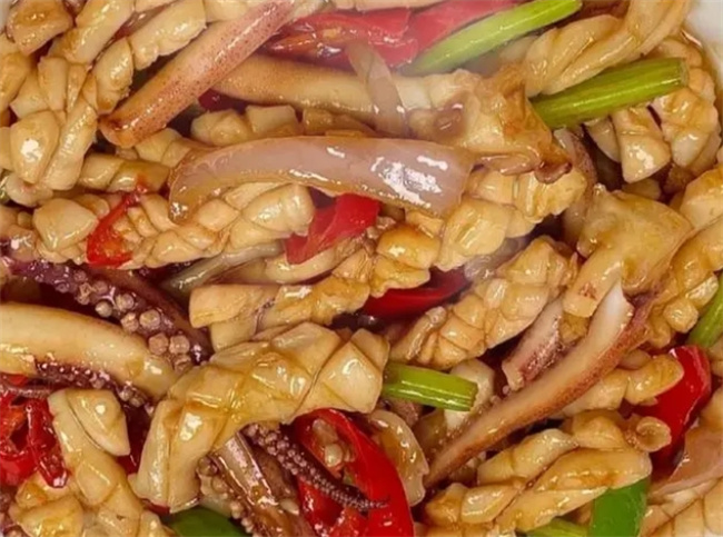 食材準備:蘆筍、口蘑、牛肉、蒜末、胡椒粉。 做法流程: 1.牛肉清洗干凈,然后切成薄片,放入大碗中,接著加入適量的淀粉、胡椒粉、生抽、蠔油和花生油,一起抓拌均勻,腌制20分鐘備用。 2.蘆筍清洗干凈,然后切成小段,接著起鍋燒水,水燒開之后,放入蘆筍焯煮兩分鐘,再撈出瀝干水分備用。 3.清洗干凈口蘑,然后切成薄片,接著熱鍋燒油,油熱以后,倒入腌制好的牛肉煸炒,煸炒至牛肉變色后,盛出備用。 4.切好蒜末,然后另熱鍋燒油,油熱以后,倒入蒜末爆香,接著倒入口蘑翻炒,炒軟以后,再倒入炒好的牛肉和焯好的蘆筍繼續(xù)翻炒均勻。 5.最后加入適量的食鹽、生抽和蠔油調(diào)味提鮮,繼續(xù)翻炒均勻入味,即可出鍋開吃。 三、爆炒魷魚