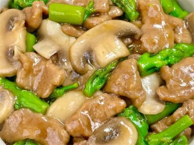 食材準備:酸筍、泡椒、青紅椒、姜蒜末、雞腿、胡椒粉。 做法流程: 1.大雞腿去除雞骨頭,然后清洗干凈,接著切成小塊,放入大碗中,再加入適量的生抽、蠔油、料酒和胡椒粉,一起抓拌均勻,腌制20分鐘備用。 2.蓮藕去皮,清洗干凈,然后和酸筍一起切成薄片備用,再準備好青紅椒、泡椒和姜蒜末,接著熱鍋燒油,油熱以后,倒入腌制好的雞腿肉煸炒。 3.煸炒至雞腿肉變色后,再放入姜蒜末和泡椒一起翻炒均勻,炒出香味,然后倒入酸筍和蓮藕繼續(xù)翻炒,加入一丟丟食鹽調(diào)味,繼續(xù)翻炒均勻。 4.翻炒至蓮藕和酸筍斷生后,再倒入雞腿肉和青紅椒一起翻炒均勻,淋入生抽和蠔油調(diào)味提鮮,繼續(xù)翻炒均勻入味,即可出鍋開吃。 二、蘆筍口蘑炒牛肉