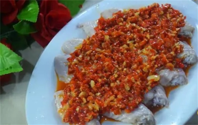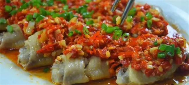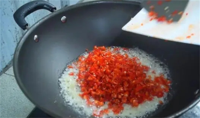 第二步:做這道菜,剁椒好吃是關鍵,所以我們需要處理一下剁椒,起鍋加油燒熱,放入蒜末,小火炒香,然后把剁椒放入鍋中,小火炒出香辣味,再加入1茶匙食鹽,加入1湯匙生抽,加入1湯匙蠔油,然后翻炒均勻,盛出備用!