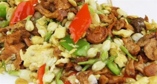 做法3:茉莉花炒蛋 準備食材如下:雞蛋4個,茉莉花30克,食鹽1茶匙,蔥1根,油適量,白酒適量 具體做法如下:茉莉花洗干凈后用鹽水焯一下,去掉一些苦澀味,并瀝干水分,雞蛋打散加入蔥花,加入少許白酒打勻,油熱后倒入雞蛋,稍微定型后劃散,加入茉莉花,加入1茶匙鹽,翻炒均勻即可!