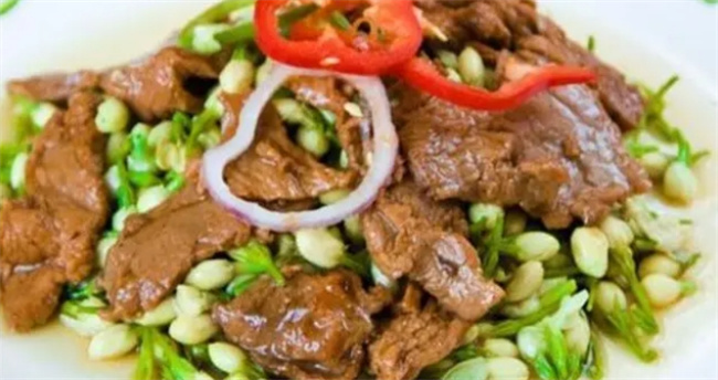 做法4:茉莉花炒肉 準備食材如下:瘦肉300克,茉莉花100克,食鹽1茶匙,醬油1湯匙,蠔油1湯匙,紅柿子椒圈3個,胡椒粉少許,淀粉1湯匙 具體做法如下:瘦肉切成薄片,放入碗中,加入1茶匙食鹽,加入1湯匙醬油,加入1湯匙蠔油,加入少許胡椒粉,加入1湯匙淀粉,然后抓勻腌制一會備用!茉莉花焯水去苦澀味,然后撈出瀝干水分備用,紅柿子椒切圈備用,起鍋加油燒熱,下肉片炒至轉(zhuǎn)色,然后倒入茉莉花,翻炒均勻至斷生即可出鍋,然后擺上椒圈即可!