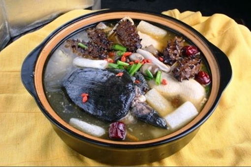 說到霸王別姬,相信大家都很熟悉了。在中國歷史典故中,西楚霸王項羽與漢高祖劉邦爭奪統治權的戰爭中,最后因失敗而死。而霸王別姬就是在死前與愛人虞姬訣別時的一個故事。在徐州老百姓們為紀念楚霸王項羽與虞姬而創制了一道名菜,這道菜就叫做“霸王別姬”。那么,下面隨小編一起來看一下蘇菜文化中的霸王別姬吧! ![]() “霸王別姬”是江蘇徐州地區的一道傳統名菜。這是徐州老百姓為紀念秦末起義軍領袖,滅秦英雄西楚霸王項羽以及那位心系國運、大義凜然的絕代佳人虞姬而創制的這道菜,代代相傳并流傳至今。 ![]() 據傳抗戰前夕,京劇大師梅蘭芳到徐州去演出《霸王別姬》,全城為之轟動。演出結束后東道主設宴餞行,席上有一道菜就是“霸王別姬”。這道菜一上桌,只見一大瓷盆里有鱉有雞,湯味滋醇濃郁,雞鱉鮮嫩酥爛。梅先生嘗了之后大加贊賞,連食兩鱉,座上其余諸客也都拍案叫絕。原來,鱉與別、雞與姬,都是諧音。鱉、雞就是“別”、“姬”。這道名菜借雞、鱉的諧音,來烘托霸王別姬這一歷史題材,含義委婉,意境甚妙。 原料:大草母雞半只(約1000克)、野生甲魚1只(約600克)、火腿1小塊、枸杞10克、蔥姜適量、胡椒粒15粒、香葉3-4片、鹽適量。 ![]() 做法: 1、先將母雞清洗干凈斬大塊,火腿蒸熟切片; 2、煮鍋開水,關火后將宰殺洗凈后的甲魚放入,浸沒后迅速撈起; 3、褪去腹背上的皮膜污衣,斬塊洗凈待用; 4、把雞和甲魚分別放冷水鍋中中,放蔥姜焯煮5分鐘,用溫水洗凈; 5、焯過水的雞和甲魚,放燉鍋中,加足量清水、蔥結、姜片、胡椒粒和香葉; 6、大火燒開后轉微火燉1個半小時; 7、下火腿片和泡開的枸杞,再燉10分鐘,加鹽調味即可。 |