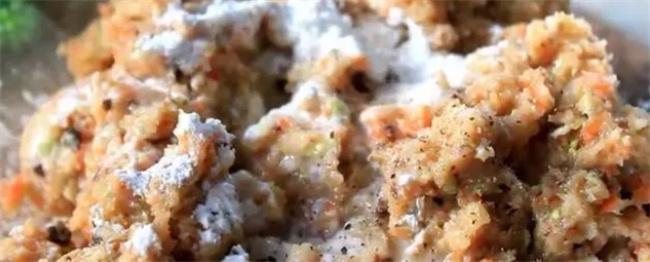 食材都打碎之后,我們需要調下味:加入1湯匙的生抽,加入1湯匙的料酒,加入1茶匙的食鹽,加入1湯匙的香油,再加入2湯匙的淀粉,然后用筷子順時針快速攪拌均勻,攪拌均勻之后,再撒上約2茶匙的黑胡椒粉,攪拌均勻即可,這樣雞肉餡就做好了!