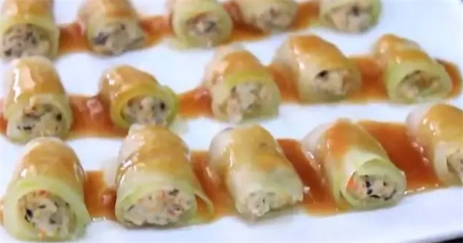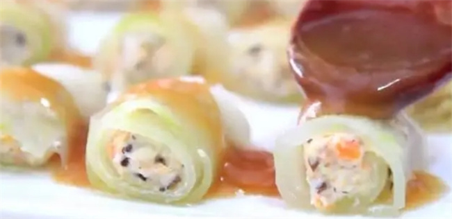湯汁芡做好之后,冬瓜卷也差不多蒸好了,冬瓜卷蒸好之后,把這個湯汁芡淋到冬瓜卷上面,這樣一道美味可口,營養豐富的家常菜小菜就做好啦,非常的好吃下飯,而且適合所有人吃,大人小孩都百吃不膩!