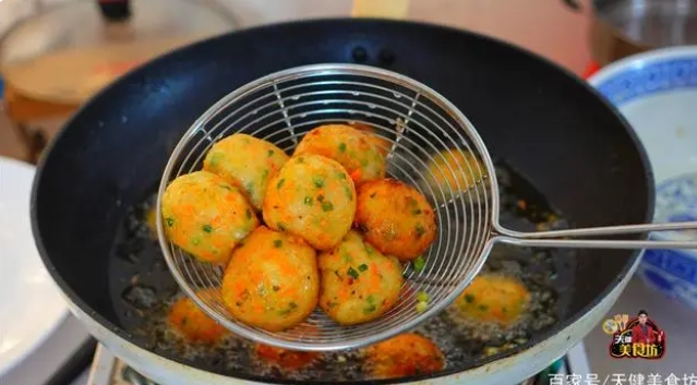 詳細做法如下: 第一步:土豆清洗干凈之后,先用刮皮刀把土豆的外皮削掉,然后切成塊,裝入盤中,再放入蒸鍋,蓋上鍋蓋,大火蒸熟。 第二步:在蒸土豆的過程中,先把胡蘿卜去皮,再切成碎粒,小蔥切成蔥花,裝盤備用,再把蝦米稍微地剁碎備用。 第三步:等土豆蒸熟之后立馬出鍋,然后倒入到一個較大的盆里面,用叉子把土豆搗碎成泥,再放入100克面粉,放入切碎的胡蘿卜、香蔥和蝦米,加入1茶匙食鹽,1湯匙胡椒粉,再攪拌均勻,然后起手揉成團,再分成均勻大小的小劑子,全部搓成圓備用。 第四步:起鍋加入寬油燒熱,油溫燒至5成熱左右,把做好的土豆丸子放入鍋中煎,小火慢煎,把土豆丸子煎熟至飄起時,就可以撈出控油了。
