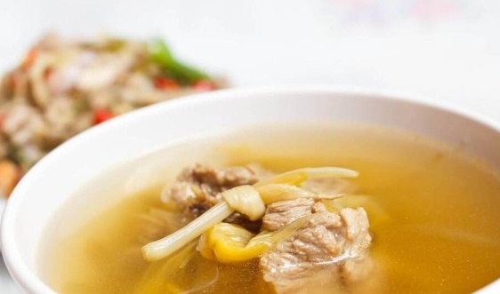 食材準備: 黃花菜30克(干),豬瘦肉50克(最好用豬黃瓜肉,味道會更鮮嫩。),百合10克,紅棗3個,蔥1小節,姜2片,鹽3克,雞精1克。 制作方法: 1.黃花菜提前浸泡20分鐘。鍋中燒開水,再將黃花菜開水下鍋,焯煮至軟爛,撈出控干水分,切成小段。 2.豬肉斜刀切成薄片。紅棗清洗干凈,去掉棗核,備用。百合清洗干凈,備用。蔥切絲備用。 3.鍋中倒入適量的清水,大火將水燒開,放入準備好的肉片,加姜片,紅棗,百合,黃花菜,大火燒開轉小火燉煮至百合軟爛。最后加入鹽,雞精調味。出鍋后撒上些蔥絲做點綴。 絲瓜肉片湯:做這道湯菜時,將肉片先用鹽,料酒,水淀粉,去腥,加底味。水淀粉漿過的肉片口感會非常鮮嫩。
