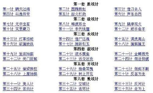 很多人以為《孫子兵法》和《三十六計(jì)》是同一部兵法,實(shí)際上《孫子兵法》要比《三十六計(jì)》早上千年。《三十六計(jì)》最早源于南北朝,直到明清時(shí)期才著稱書(shū)籍。而《孫子兵法》距今已有2500年的歷史,可以說(shuō)遠(yuǎn)早于《三十六計(jì)》。這兩本兵法策略在內(nèi)容上也有很大的不同,《三十六計(jì)》可以說(shuō)是積累了此前各個(gè)朝代的軍事思想和戰(zhàn)爭(zhēng)經(jīng)驗(yàn)總結(jié)出來(lái)的兵書(shū),那兩者究竟是有著怎樣的區(qū)別呢? ![]() 一.成書(shū)時(shí)間與作者 《孫子兵法》的作者是春秋時(shí)期的吳國(guó)將軍孫武,成書(shū)于約公元前512年左右,又稱《孫武兵法》、《孫武兵書(shū)》、《吳孫子兵法》、《孫子兵書(shū)》等;2.《三十六計(jì)》的作者不詳,語(yǔ)出南北朝時(shí)期,成書(shū)于明清時(shí)期即公元1640年前后。 由此可以看出兩本兵書(shū)成書(shū)時(shí)間相差2000多年,不能混為一談。 二.內(nèi)容概要 ![]() 1.《孫子兵法》共有六千字左右,一共十三篇,主要內(nèi)容如下: 第一部分,主要講戰(zhàn)略運(yùn)籌,包括第一篇《始計(jì)篇》、第二篇《作戰(zhàn)篇》、第三篇《謀攻篇》 第二部分,主要講作戰(zhàn)指揮,包括第四篇《軍形篇》、第五篇《兵勢(shì)篇》、第六篇《虛實(shí)篇》 第三部分,主要是講戰(zhàn)場(chǎng)機(jī)變,包括第七篇《軍爭(zhēng)篇》、第八篇《九變篇》、第九篇《行軍篇》 第四部分,主要是講軍事地理,包括第十篇《地形篇》,第十一篇《九地篇》, 第五部分,主要是講特殊戰(zhàn)法,包括第十二篇《火攻篇》、第十三篇《用間篇》 ![]() 2.《三十六計(jì)》原書(shū)按計(jì)名排列,共分六套,即勝戰(zhàn)計(jì)、敵戰(zhàn)計(jì)、攻戰(zhàn)計(jì)、混戰(zhàn)計(jì)、并戰(zhàn)計(jì)、敗戰(zhàn)計(jì)。前三套是處于優(yōu)勢(shì)所用之計(jì),后三套是處于劣勢(shì)所用之計(jì)。每套各包含六計(jì),總共三十六計(jì)。即: 第一套,勝戰(zhàn)計(jì),包括瞞天過(guò)海、圍魏救趙、借刀**、以逸待勞、趁火打劫、聲東擊西 第二套,敵戰(zhàn)計(jì),包括無(wú)中生有、暗度陳倉(cāng)、隔岸觀火、笑里藏刀、李代桃僵、順手牽羊 第三套,攻戰(zhàn)計(jì),包括打草驚蛇、借尸還魂、調(diào)虎離山、欲擒故縱、拋磚引玉、擒賊擒王 第四套,混戰(zhàn)計(jì),包括釜底抽薪、混水摸魚(yú)、金蟬脫殼、關(guān)門(mén)捉賊、遠(yuǎn)交近攻、假道伐虢 第五套,并戰(zhàn)計(jì),包括偷梁換柱、指桑罵槐、假癡不癲、上屋抽梯、樹(shù)上開(kāi)花、反客為主 第六套,敗戰(zhàn)計(jì),包括美人計(jì)、空城計(jì)、反間計(jì)、苦肉計(jì)、連環(huán)計(jì)、走為上計(jì) 有學(xué)者在三十六計(jì)中每取一字,依序組成一首詩(shī):金玉檀公策,借以擒劫賊,魚(yú)蛇海間笑,羊虎桃桑隔,樹(shù)暗走癡故,釜空苦遠(yuǎn)客,屋梁有美尸,擊魏連伐虢。 ![]() 三.歷史地位及評(píng)價(jià) 1.《孫子兵法》被譽(yù)為“兵學(xué)圣典”(孫武也被國(guó)人尊為“兵圣”),是中國(guó)古代軍事文化遺產(chǎn)中的璀璨瑰寶,是中華民族優(yōu)秀傳統(tǒng)文化的重要組成部分,其內(nèi)容博大精深,邏輯縝密嚴(yán)謹(jǐn),是中國(guó)古代軍事思想精華的集大成者。更是中國(guó)現(xiàn)存最早的兵書(shū),也是世界上最早的軍事著作。 《孫子兵法》是美國(guó)西點(diǎn)軍校和哈佛商學(xué)院高級(jí)管理人才培訓(xùn)必讀教材,是商界必備實(shí)戰(zhàn)手冊(cè)啟迪人生權(quán)變創(chuàng)新的智慧。兵法的核心在于挑戰(zhàn)規(guī)則,規(guī)則就是沒(méi)有規(guī)則,兵法是謀略,謀略不是小花招,而是大戰(zhàn)略、大智慧。 《孫子兵法》被翻譯成英文、俄文、德文等20多種語(yǔ)言在全世界流傳,據(jù)統(tǒng)計(jì)全世界有數(shù)千種關(guān)于《孫子兵法》的刊印本。不少國(guó)家的軍校也把它列為教材。據(jù)報(bào)道,1991年海灣戰(zhàn)爭(zhēng)期間,交戰(zhàn)雙方都曾研究《孫子兵法》,借鑒其軍事思想用以指導(dǎo)戰(zhàn)爭(zhēng)。 唐太宗李世民評(píng)價(jià)說(shuō)“觀諸兵書(shū),無(wú)出孫武” 偉人評(píng)價(jià)《孫子兵法》:"中國(guó)古代大軍事家孫武書(shū)上'知彼知己,百戰(zhàn)不殆'這句話,是包括學(xué)習(xí)和使用兩個(gè)階段說(shuō)的,包括認(rèn)識(shí)世界中的發(fā)展規(guī)律,并按照這些規(guī)律,去決定自己的行動(dòng)克服當(dāng)前敵人而說(shuō)的;我們不要輕看這句話。"又說(shuō):"孫子的規(guī)律,'知彼知己,百戰(zhàn)不殆'當(dāng)下仍是科學(xué)真理"。 日本松下電器創(chuàng)始人松下幸之助說(shuō):“《孫子兵法》是天下第一神靈,我們必須頂禮膜拜,認(rèn)真背誦,靈活運(yùn)用,公司才能發(fā)達(dá)?!?/p> 2.《三十六計(jì)》是根據(jù)中國(guó)古代軍事思想和豐富的斗爭(zhēng)經(jīng)驗(yàn)總結(jié)而成的兵書(shū),是中國(guó)古代兵家計(jì)謀的總結(jié)和軍事謀略學(xué)的寶貴遺產(chǎn),是中華民族悠久非物質(zhì)文化遺產(chǎn)之一。 四.總結(jié) 《孫子兵法》講的是“道”,“道”就是戰(zhàn)爭(zhēng)的規(guī)律,高屋建瓴, 而《三十六計(jì)》講的是“術(shù)”,“術(shù)”就是戰(zhàn)爭(zhēng)中具體使用的計(jì)謀策