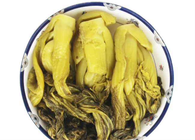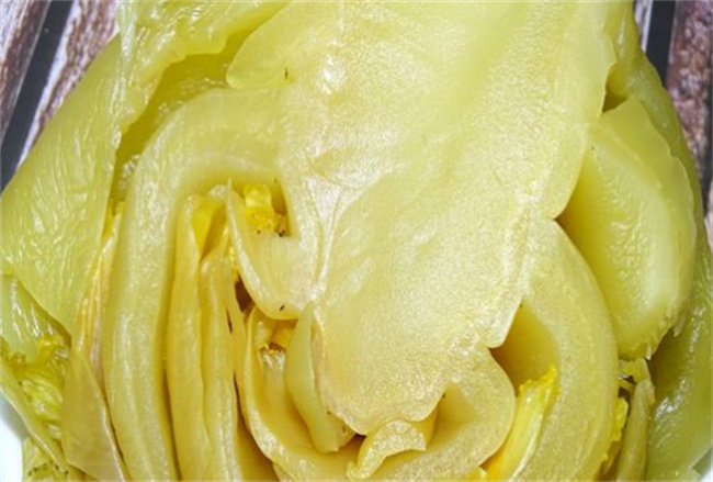 制作方法 在腌制酸菜時和古人的方法一致,收割大菜之后去除一些老葉,將大菜直接切成兩半。小的可以直接用一整顆在暴曬之后進行軟化,加入適量的鹽,用大石頭壓緊。大概在三天之后,食鹽會逐漸的融化大菜,此時會出現很多的菜汁,接著把一些熱米湯放入到容器中,接下來每一天都需要放米湯直到容器中,散發一種酸甜的氣味,此時菜葉已經從原先的綠色變成黃色。這種腌制的方法可讓腌菜色香味俱全,惹人喜愛,擁有著誘人的芳香,無數人都會嘆為觀止。