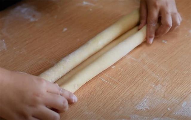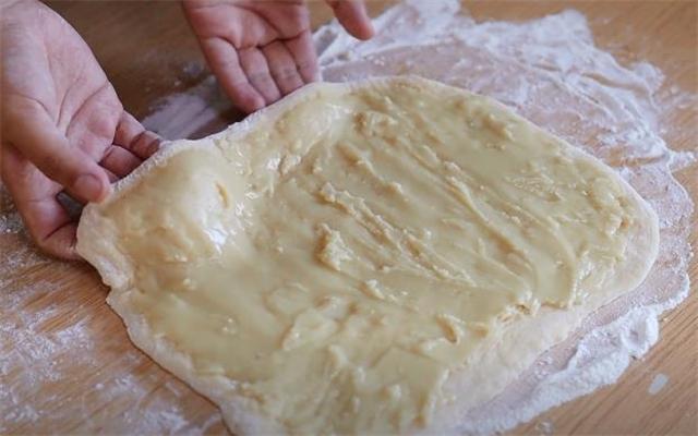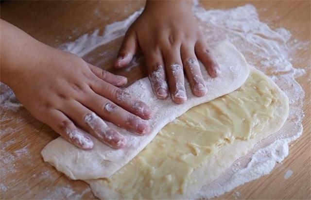 7.搟好之后我們按照剛才的方法再次折疊,然后再次搟開,這個過程就是開酥了。