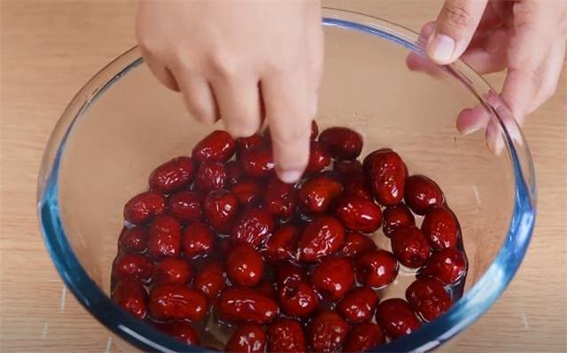 1.我們先準備一些紅棗,用溫熱的水泡上10分鐘,簡單泡發。