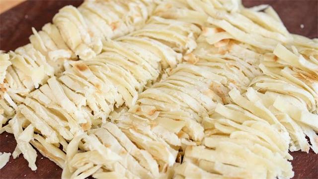 9.餅絲的做法特別簡單,搟餅皮的時候薄一點就可以當作春餅,厚一點的話切成餅做成餅絲,全程大火烙,上下一起加熱不用刷油,特別簡單。 |