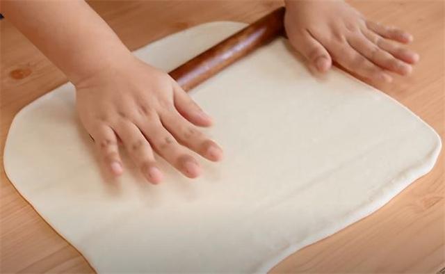 3.面團餳好之后會更柔軟,直接取出來用搟面杖搟成餅皮。(www.ws46.com)