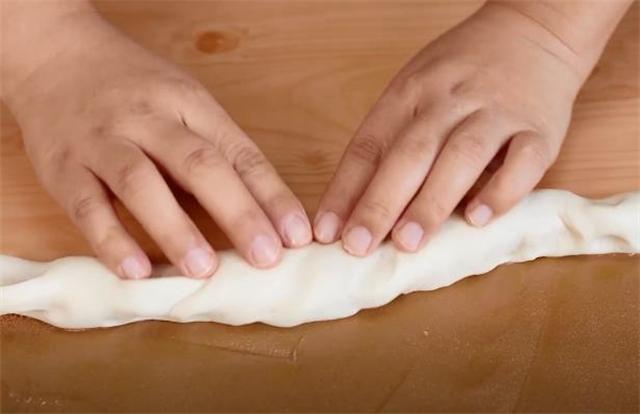 5.這里卷的時候,一定要盡量的緊實一點,卷的層次越多,我們最后出來的效果也就越好。