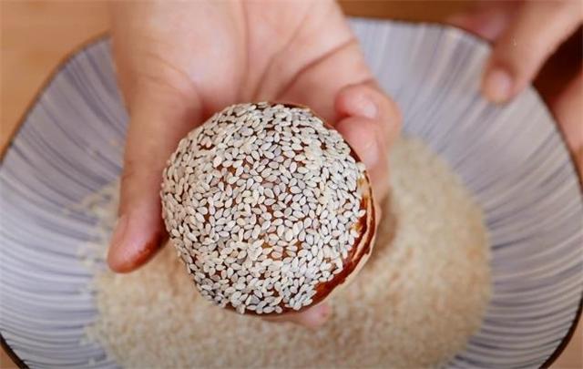 11.然后再蘸上一層白芝麻,我們這個劑子就做好了。