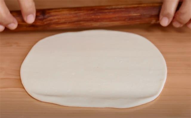 3.處理小面劑的時候先簡單的揉勻,搟成長方形的餅皮。
