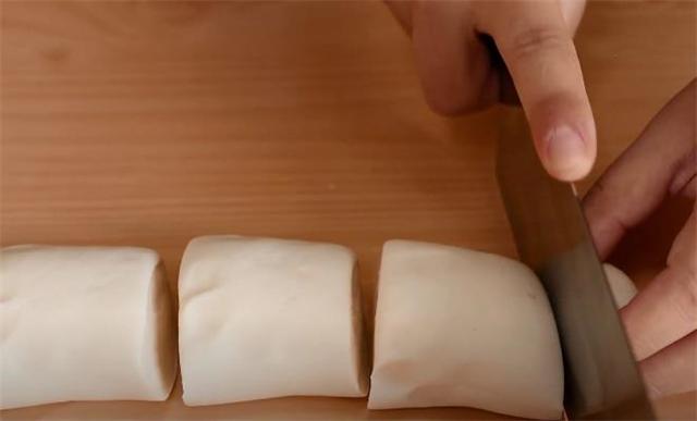 2.和面機已經(jīng)把面團揉的非常勻稱了,我們只需要稍微的整一下形,再切成小面劑。