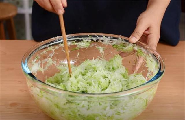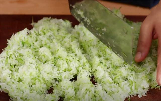 5.蘿卜絲擠干水分之后再用刀剁碎一些。