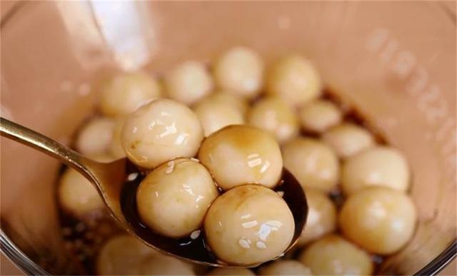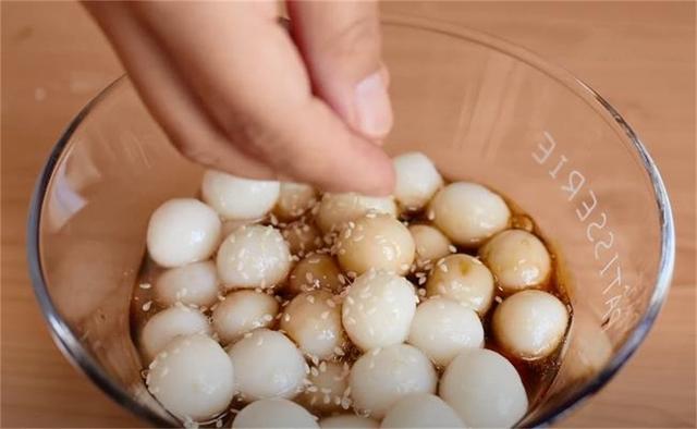 9.直接倒在山藥糯米圓子上面,撒上一點白芝麻。