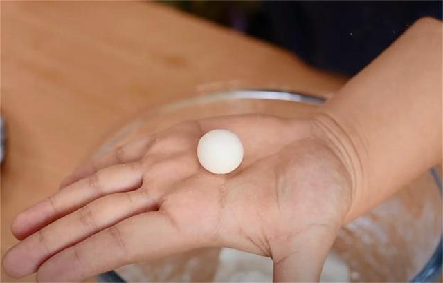 5.處理小面劑的時候我們直接揪一小塊出來,在掌心先反復的抓到濕潤的狀態,然后在另一個手的掌心里搓成圓球。(www.ws46.com)