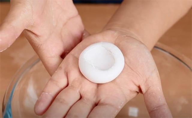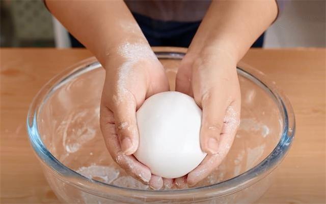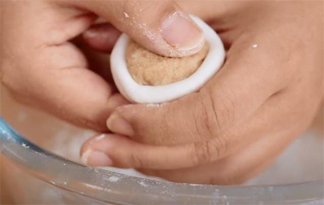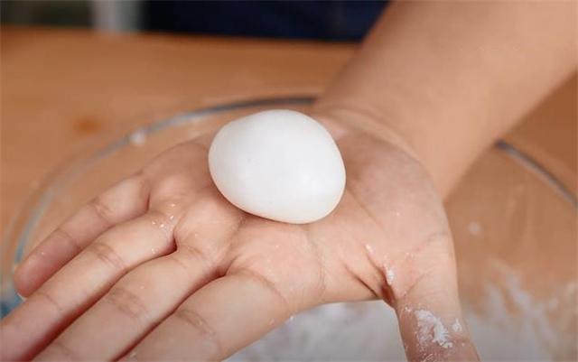 8.最后的時候我們把這個收口處一定要給收緊,搓成一個小圓球的一個形狀,我們這個湯圓的坯子就做好了。